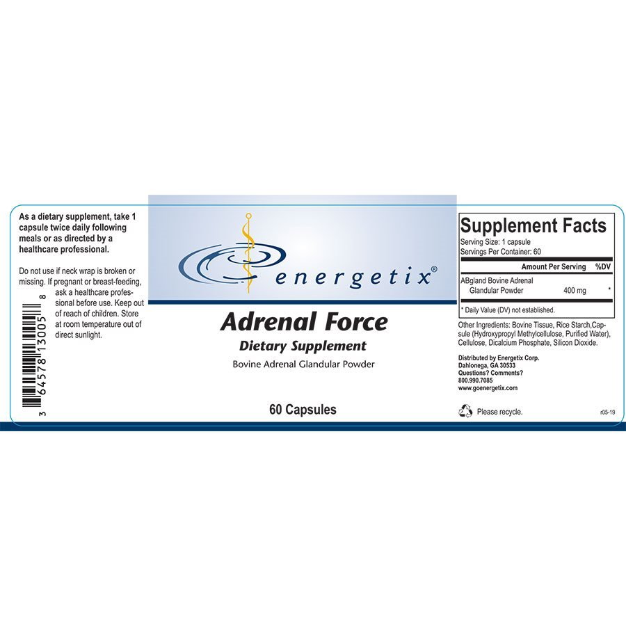 Adrenal Force is a dietary supplement containing pure, clean-sourced, freeze-dried adrenal gland from New Zealand grass-fed bovine. This supplement is designed to support healthy adrenal function and normal energy levels.