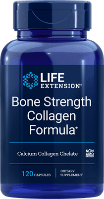 Optimize your bone health with the Bone Strength Collagen Formula, a supplement featuring a patented chelated form of calcium and collagen designed to support bone strength, flexibility, and mineral density.