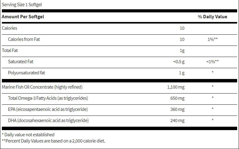 Total Omega-3 Fatty Acids (as triglycerides): 650 mg