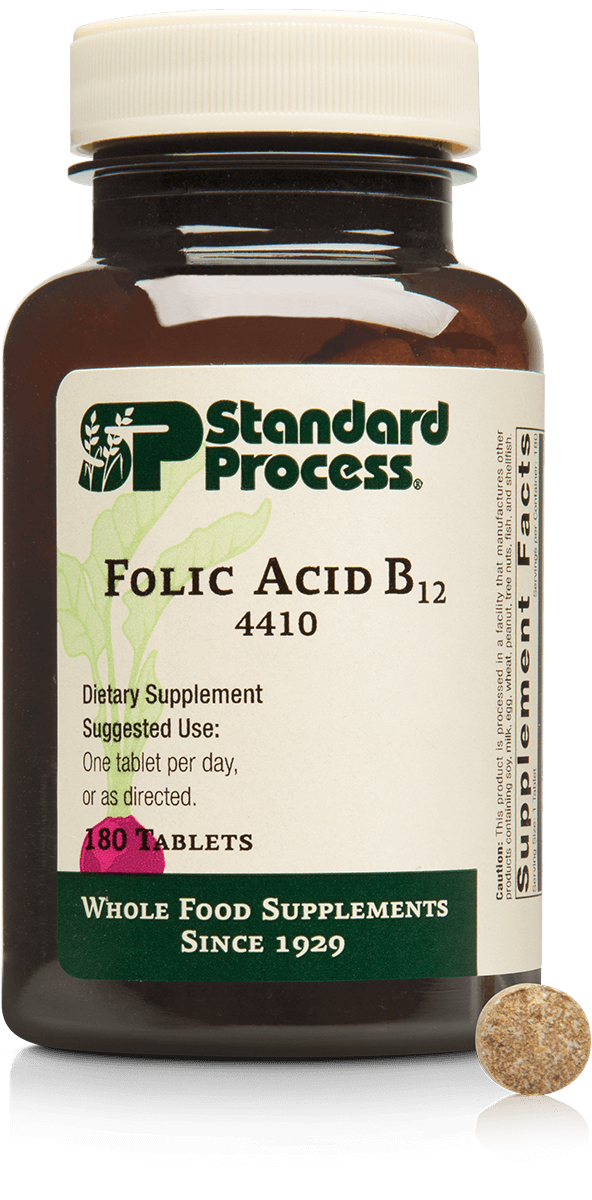 Folic acid and vitamin B12 support cellular health.