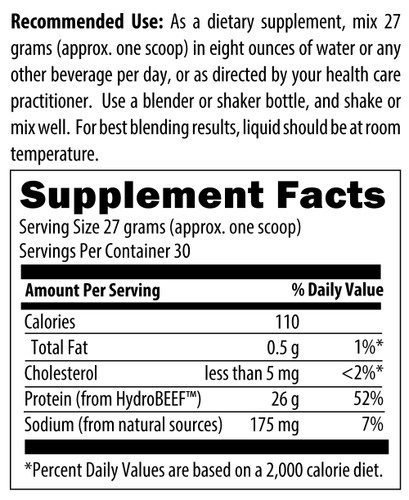 PurePaleo™ is a novel, great-tasting, dairy-free protein powder, yielding 21 g of protein per serving. It contains HydroBEEF™, a highly concentrated, bone broth protein isolate, produced through an exclusive proprietary process that allows the protein to be hydrolyzed into more peptides, resulting in easier absorption and assimilation. This product contains beef from animals raised in Sweden without hormones or antibiotics, and is free of any GMO grains, grasses, and/or ensilage.