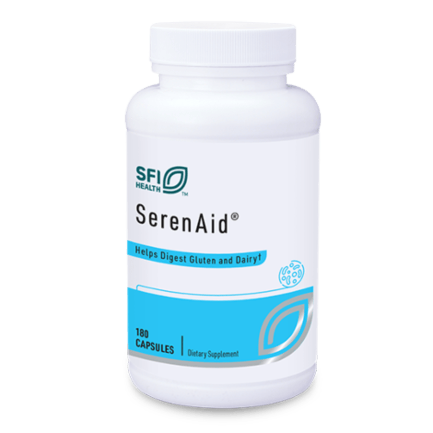 A proprietary blend of microbial enzymes, SerenAid® is specifically formulated to assist in breaking down a broad range of plant and animal proteins, including casein (milk and dairy products), gluten (wheat, rye, oats, barley, and other grains), and soy proteins. The inclusion of Exorphinase® differentiates SerenAid® from other digestive enzyme formulas.