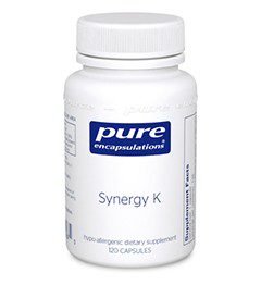 Vitamin K includes a group of compounds that contain a central ring structure with varying side chains. These differing side chains account for variations in absorption, bioavailability, transport and tissue distribution. Phylloquinone, is the most common form and is found in plants and green vegetables. The vitamin K family, menaquinones, are less common and are found in meats, eggs, some cheeses, and fermented food, such as Japanese natto. The most common menaquinones are menaquinone-4 (MK-4) and menaquinone-7 (MK-7). Studies indicate that vitamin K and MK-4 are primarily concentrated in the liver, while MK-7 concentrates in extra-hepatic tissues, including vascular tissues, and has a longer half-life. Vitamin K enhances bone formation by carboxylating osteocalcin. This enables osteocalcin to bind to calcium and promote healthy bone mineralization. Adequate intake of vitamin K and K may be especially important for optimal carboxylation in aging individuals, as indicated by a recent study involving Japanese women. By activating matrix Gla-protein (MGP), vitamin K also helps maintain healthy calcium metabolism in vascular tissues, supporting healthy vascular elasticity. Recent studies indicate that vitamin D also potentiates the activity of MGP and that the combination of vitamin K and D provides synergistic support for blood vessel function and bone health. Vitamin K supplementation is contraindicated for those taking Coumadin/warfarin anticoagulant medication.