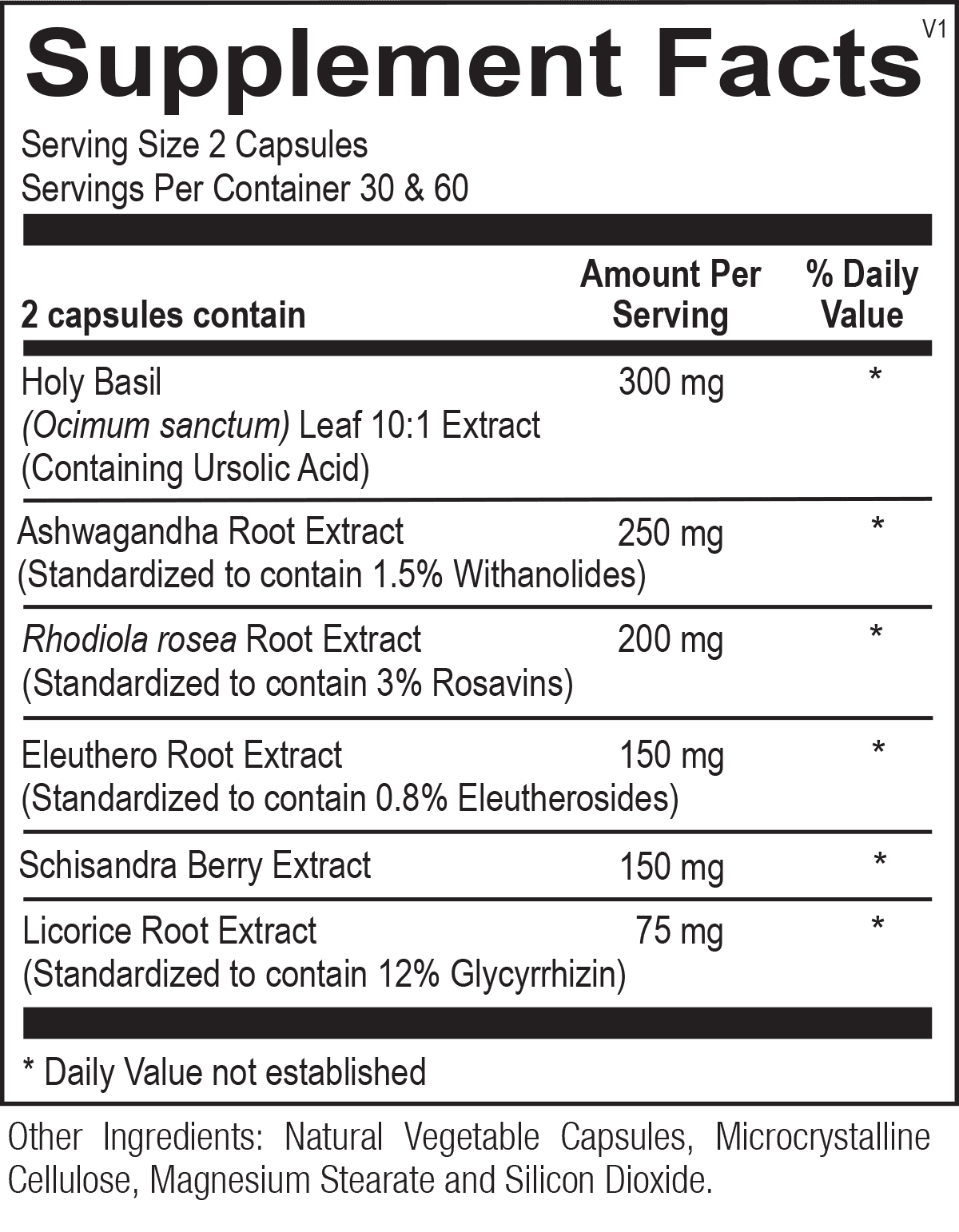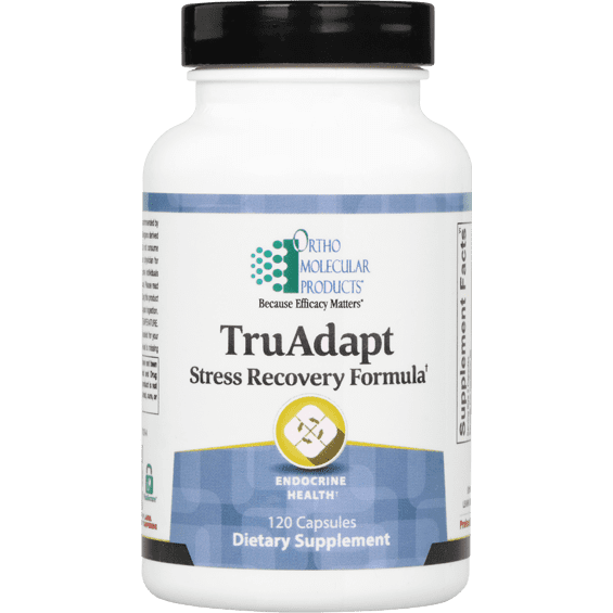 TruAdapt provides a unique blend of “stress-adapting botanicals” that help increase the body’s resistance to fatigue, improve attention and immune function, and maintain balanced cortisol and DHEA levels.